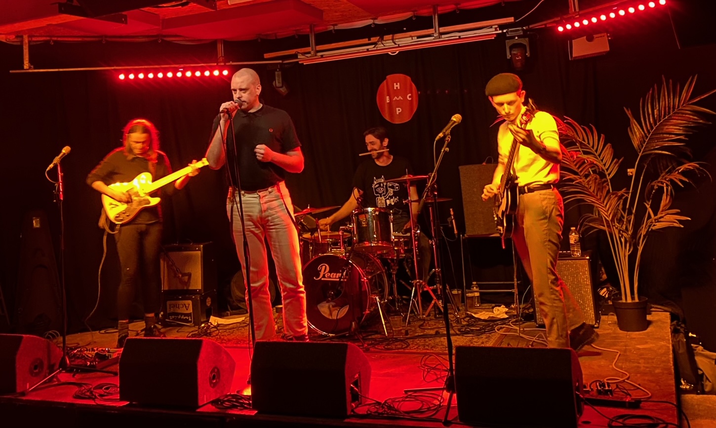 Downstairs it’s not quite so relaxed: post-punk agit-proppers Italia ’90 are in town and if their coruscating debut album Living Human Treasure is anything to go buy, faces are just as likely to be very got into. They’re supported by Southampton’s Happy2000, a chaotically fun punk/noise quintet who taking the hint are busy partying too, musically though like it’s 1999.